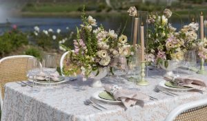 Summerlight was developed with the full tabletop in mind. Alongside table linens, the collection includes coordinating napkins, chargers, and accents that bring depth and dimension to the table.