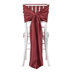 Who would not want silk textiles dressing their chairs at their next event? Our Shantung Chair Ties are a way we can all afford the lusciousness of silk without the expense. A vintage color that will remind you of your favorite luscious wine, Merlot Shantung (like the wine) has medium body with hints of berry, plum and currant. Your chairs will never look better than dressed with our chic Shantung Chair Tie, and tied as unique as you.