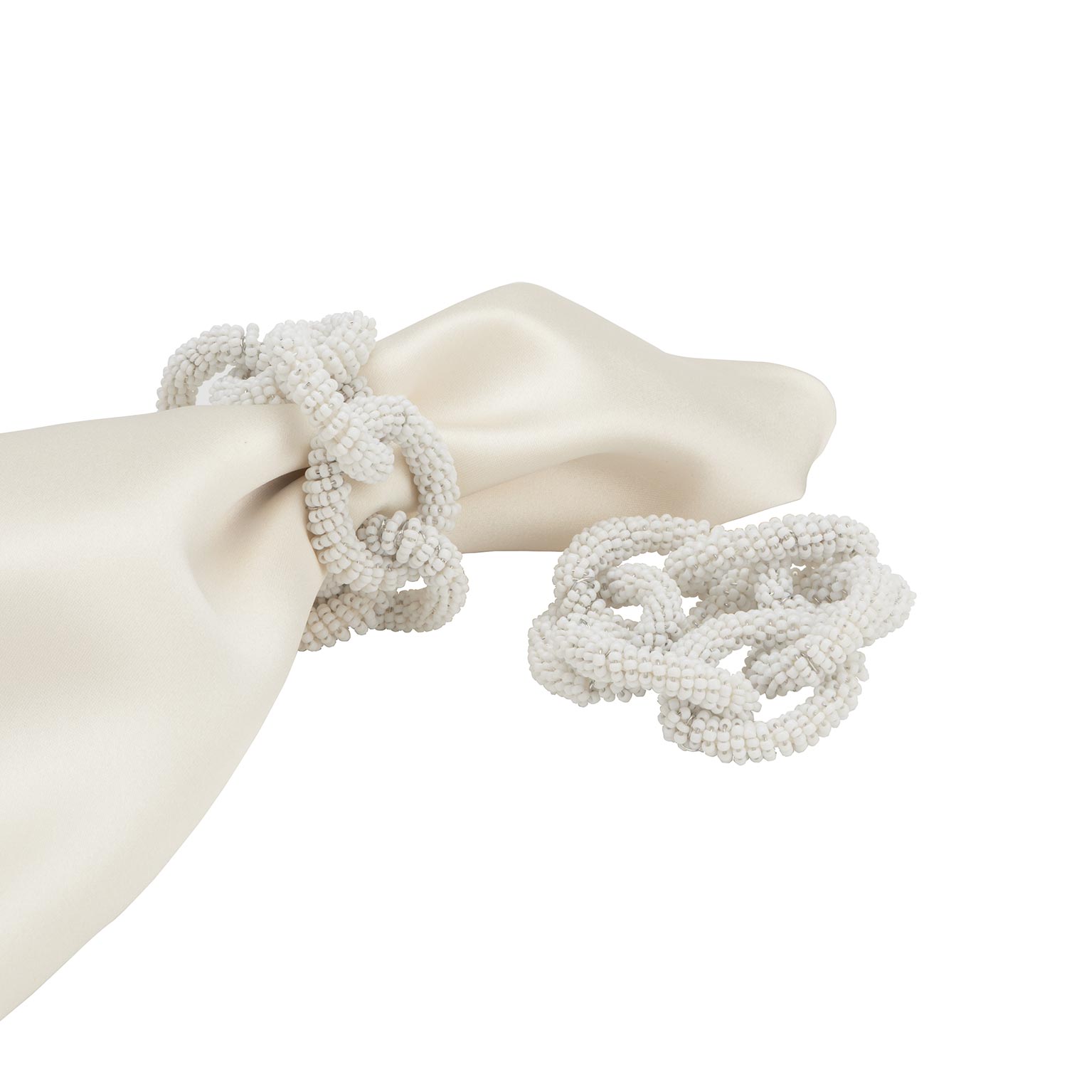 A white embroidered cloth napkin with a soft cotton-like hand and scalloped edge finished in Provençal blue stitching. The sculpted embroidered trim introduces crisp definition and subtle textural contrast.