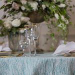 Different from other linen patterns in the Kaleidoscope Collection, Aqua Spectrum relies on strong luminescent color for its infinitely appealing punch. The turquoise and ivory graining of this fantastic new linen choice will add beauty and depth to an event table, and help form the underlayment for unforgettable personal expressions. It is a unique and beautiful addition to this extraordinary collection.
