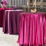 A luxe striped design textile that shimmers and glows from every perspective, Azalea Gigi is glam and playful at the same time, with an energetic presence that calls for inventive table settings. The brilliance of this color — between glossy lipstick and a perfectly ripe cherry — makes it a standout performer, whether it’s used as supporting cast or as the star of the show. The Haute Pink Collection is suitable for lavish formal events as well as for casual celebrations.