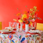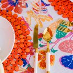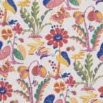 Step into an enchanted disco garden with our Boogaloo Cherry Table Linen. Featuring retro whimsical patterns of plants, flowers, and butterflies in a vibrant palette of darker and lighter greens, muted reds, yellows, blues, and fuchsia purples, this linen exudes playful charm and retro allure.