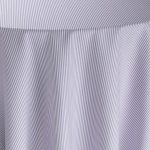 A soft lilac woven stripe tablecloth with narrow linear detailing and airy tonal presence. The refined banding introduces dimension while preserving lightness.