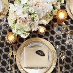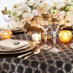 Black and gold balanced in perfect harmony provide the perfect fashionable pattern in Gold Hex. The repeating geometric shapes and clean lines infuse Gatsby-era opulence to the chic design. The Alloy Collection linen has gleaming metallic hues woven into a shimmering fabric that drapes softly and elegantly, creating a gorgeous, sumptuous base for a special occasion table.