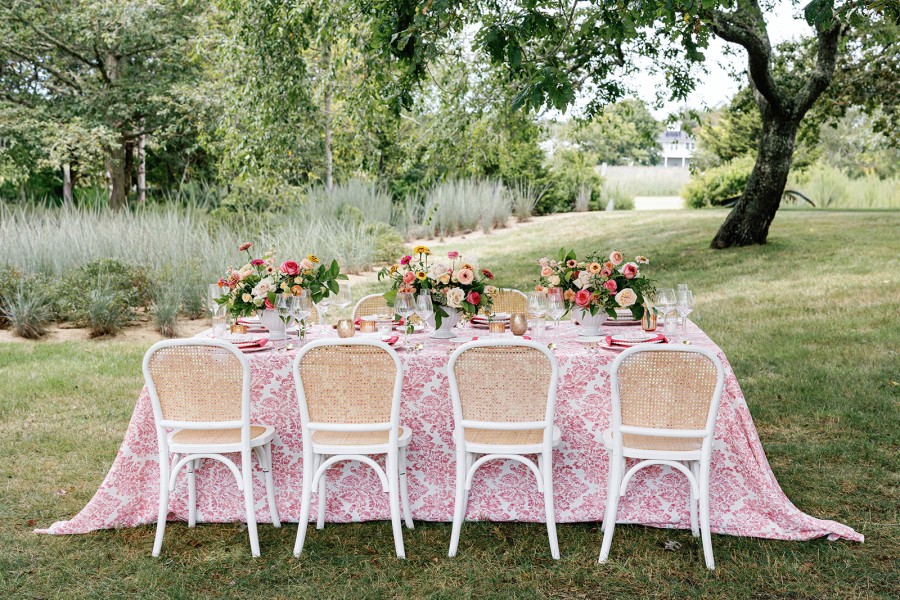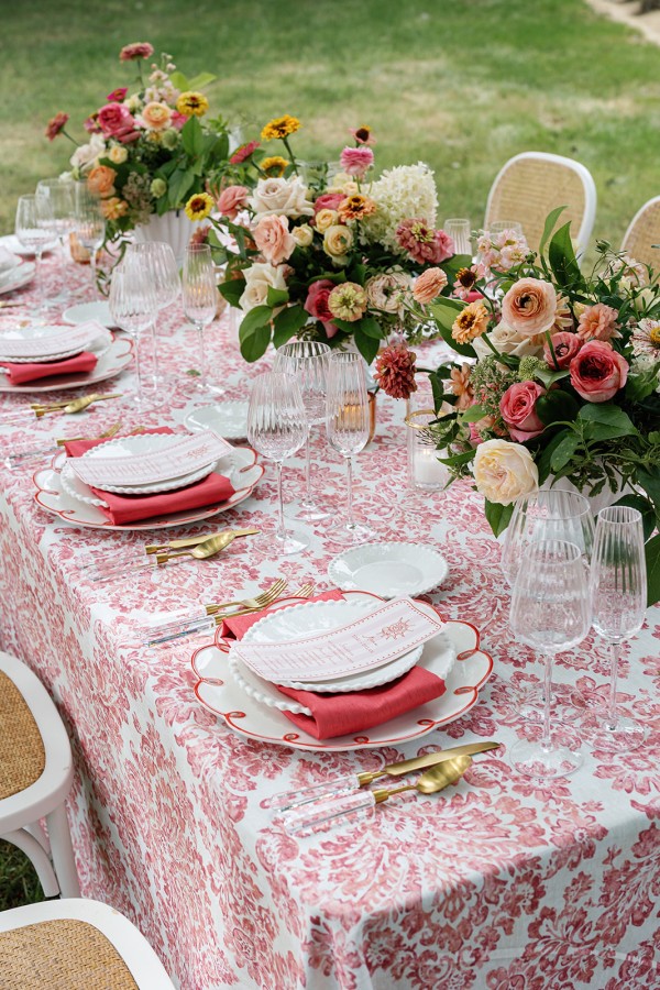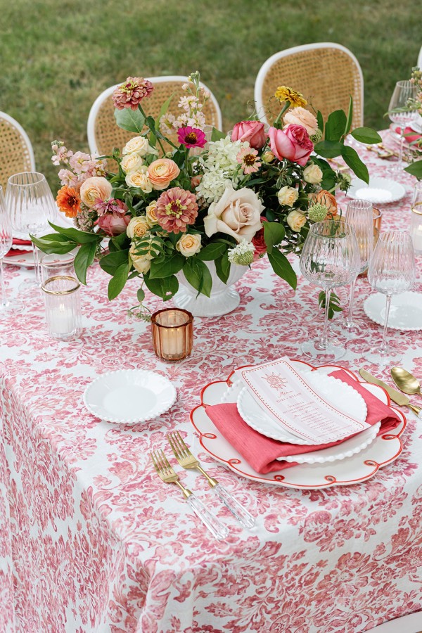 Hidden Garden Hibiscus blooms with painterly florals in hibiscus red, blush pink, leafy green, and ivory cream. Its botanical pattern feels both storied and fresh, evoking gardens beyond the harbor.