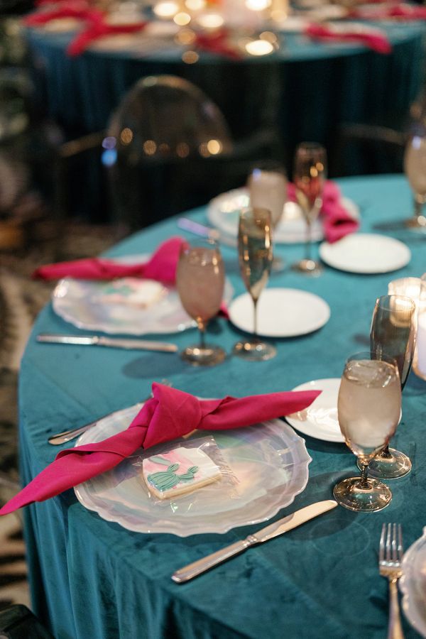 Velvet is the perfect choice for creating a rich, plush luxurious event. Our Mallard Velvet is a deep, rich, blue-green with a luminous glow. The velvet collection is specially woven and dyed to achieve a deep rich color that embodies decadence. Velvet has a soft drape that creates gentle folds and a shimmering surface. Mallard velvet will make any special event a memorable vision.