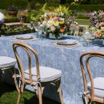 Our Meadow Provence Table Linen features a botanical motif in various shades of serene blue, printed in a woven texture. This tone-on-tone beauty effortlessly brings the harmony of nature to your tablescape design, immersing your surroundings with the soothing essence of a whimsical garden.