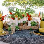 Spirit your guests away to the Caribbean island of St Barths with the bold white-on-black palm frond pattern of this modern linen. Inspired by the light at the moment day meets night, St Barth mimics the dream-like shadows of evening transforming into deep black night. With dramatic lines and contrasting colors, it will set the table for a luxurious and laissez-fare island experience.
