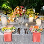 Inspired by the remote planet of Neptune, Silver Neptune table linen features a distressed metallic silver finish with a modern, hexagonal pattern. This satin finish linen can be used as a subtle accent pattern or as a bold highlight of the night. Silver Neptune’s gleaming silver color is perfect for a warm summer occasion or an icy winter soiree.