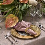 Burnished silver and gold metallic textile that is refined grandeur with understated approachability. Designed with a nod to the 1920s where glam and sophistication left lasting impressions. As part of the Gold Kroft Kehoe Collection, a part of our Designer Series, the Silver Nova table linen is a great foundation for nearly any event. It’s all in the way you layer it, which makes this collection bold and full of aspiration.