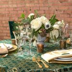 This linen is emerald green diamonds, speckled with snowy drifts of metallic gold, amid green diamond pattern. Like a spruce tree silently, softly, slowly descending into the falling snow, Spruce Adorn brings the feeling of winter calm. Choose Spruce Adorn, and ornament your tablescape with winter radiance.