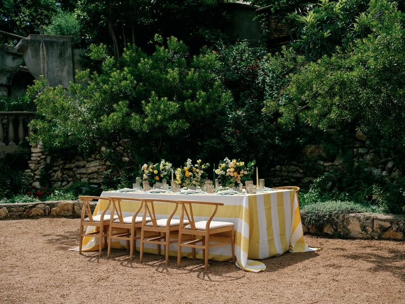 Bright, bold, and sun-kissed, the Vintage Stripe Zest Tablecloth infuses the table with the radiance of golden Mediterranean afternoons. The striking citrus-hued stripes are a nod to vibrant market stalls, Sicilian lemons, and breezy coastal retreats, making it the perfect backdrop for a lively gathering. With a light, airy drape and a playful yet sophisticated aesthetic, this linen is made for long, lingering meals under the sun.