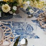 Capturing the essence of ceramic artistry in textile form, Our Belmont Azure Table Runner was crafted with the detailed and intricate designs of porcelain in mind. This block print of blue leaf medallions, against an off-white ground, beautifully imbues a touch of artisanship to any soiree.