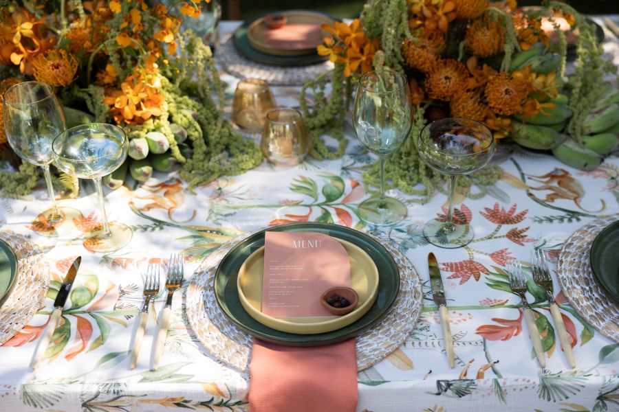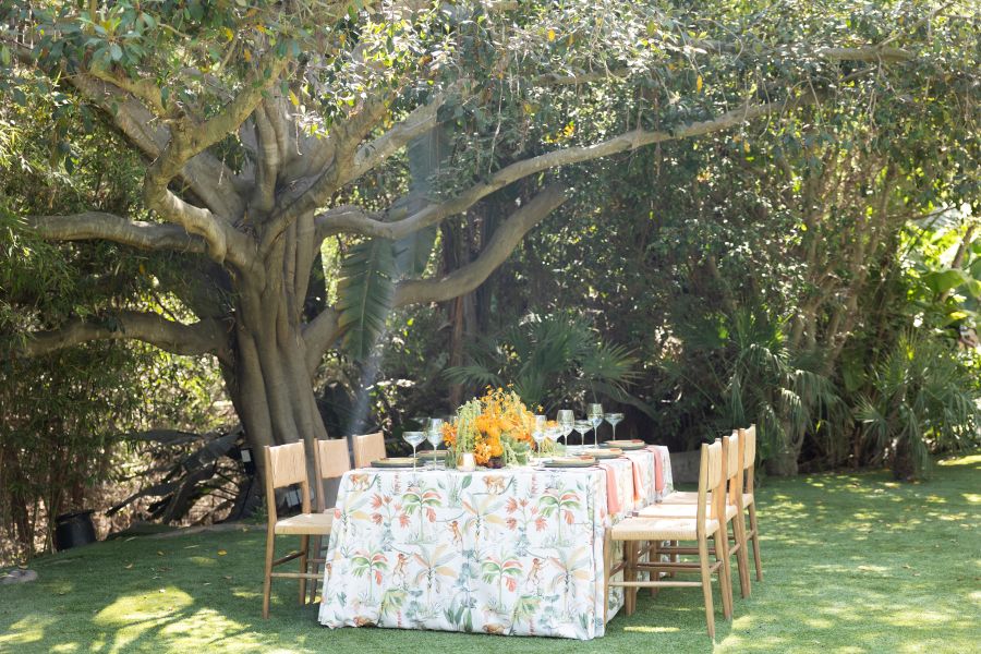 The Borneo Runner distills earthy jungle textures into a versatile accent, pairing beautifully with wood tones or organic florals.
