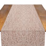 Our Bungalow Sunkissed Table Runner creates an immersive experience for you and your guests. An intricate, interlocked pattern with warm pink hues emanates an air of refinement and serene charm, inviting you to escape into a realm of relaxation and ease.