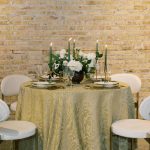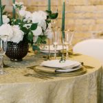 Add high-impact sparkle to any event with the bold glitter of sequins on Zelda linen. Gold sequins are woven into a triangular geometric pattern against a soft ivory sequin background for the perfect balance of shine and texture. The Alloy Collection linen has metallic shades woven into a soft.