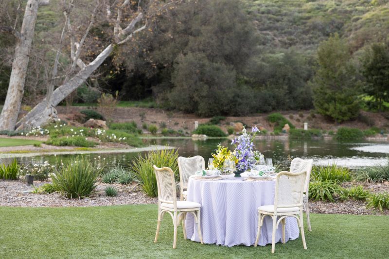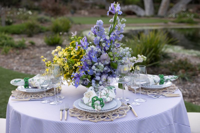 A lilac stripe table runner defined by delicate vertical lines and graceful rhythm. The woven structure enhances layered designs with understated clarity.