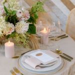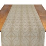Enhance your table setting with the Diorite Champagne Runner, showcasing intricate patterns in white, beige, and champagne tones that add a touch of refined beauty.