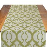 Miramar table runners are retro-chic with this play on the quatrefoil pattern, sending ribbons of rich color running through a creamy ivory background. Small seams outline the pattern to add texture and definition to this stylish design. Leaf Miramar table runners combine soft ivory with a spring-time green to serve as the perfect blend of color and pattern.