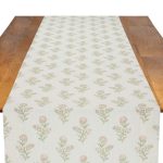 A clay floral table runner featuring intricate botanical layering and refined symmetry. The detailed pattern adds dimension with composed sophistication.