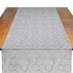 Inspired by the remote planet of Neptune, Silver Neptune table runners feature a distressed metallic silver finish with a modern, hexagonal pattern. These satin table runners can be used as a subtle accent pattern or as a bold highlight of any table. Silver Neptune’s gleaming silver color is perfect for a warm summer occasion or an icy winter soiree.